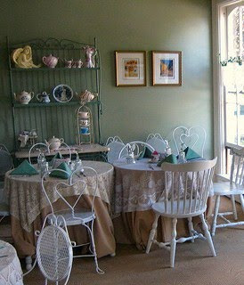 The room had high ceilings and was painted the same color that I had in my bath. There were antique tea cups all over the place and I collected them. Some of them even looked the same as mine.